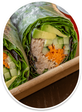 Each roll is made with fresh ingredients, ready to grab on the way to the beach or home after a long day.